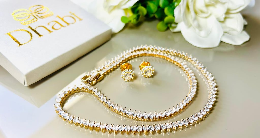 "Somos Dhabi, uma loja especializada em semijoias banhadas a Ouro 18k e Ródio , e joias em Prata 925.